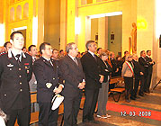 Erano rappresentate tutte le forze dell’ordine: marina, carabinieri, guardia di finanza, polizia di stato, polizia municipale, a livello provinciale, ma anche la magistratura, l’ente Comune, associazioni di volontariato. Ad officiare la cerimonia il vescovo Michele Pennisi, coadiuvato da mons. Grazio Alabiso, dal parroco di San Giacomo e da altri prelati. La lettura del vangelo è stata affidata agli uomini delle varie armi che hanno recitato la preghiera del corpo di appartenenza. Nell’omelia mons. Pennisi ha sottolineato la necessità ed il dovere di fuggire dal male verso cui è facile precipitare e percorrere un cammino di solidarietà e di pace indicato dal vangelo.