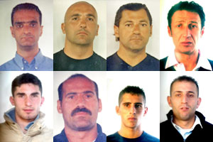 Salvatore Burgio, 43 anni, pluripregiudicato; Francesco Morteo, 45 anni, pluripregiudicato; Enrico Maganuco, 46 anni, pluripregiudicato; Vincenzo Gueli,44 anni, pluripregiudicato; 5. Francesco Giovane, 23 anni; Giuseppe Alferi, 46 anni, pluripregiudicato; Nunzio Alferi, 22 anni; Giuseppe Claudio Alferi, 29 anni, tutti di Gela