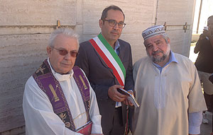 Dopo la preghiera, in parte cattolica e in parte musulmana, l’abbraccio dei due celebranti. Le operazioni di tumulazione sono state effettuate dai migranti presenti.