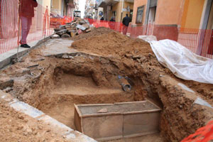 Un sarcofago di epoca ellenistica, risalente al VI secolo a.C., è tornato alla luce a Gela, in via Aldisio Sammito, nel quartiere Borgo, durante gli scavi per la posa in opera della nuova rete idrica. All'interno della tomba sono state rinvenute ossa umane frantumate, due "aryballoi" (ampolle contenenti oli profumati) e all'esterno, a poca distanza, una fuseruola (un utensile forato funzionante da supporto a un fuso da lana) che induce gli archeologi a pensare si tratti della sepoltura di una donna di modeste condizioni economiche. Il sarcofago infatti non contiene un corredo funerario ricco e variegato. Una delle due ampolle è rotta.