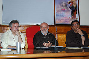 Alla conferenza stampa hanno presenziato il parroco fra’ Rocco Quattrocchi, che ha fatto gli onori di casa e poi il ministro provinciale fra’ Enzo Zagarella, massima autorità cappuccina della provincia monastica di Siracusa, fra’ Gabriele Cadorin, il sindaco Avv. Angelo Fasulo e Gianni Virgadaula, che curerà la regia del filmato. Il regista, già autore di numerosi lavori a tema religioso, dopo avere ringraziato padre Quattrocchi per avergli affidato la realizzazione del film-documentario che girerà con l’ausilio dell’Istituto culturale di Sicilia per la cinematografia, si è detto felice di potere dare un importante contributo ad una migliore conoscenza della storia devozionale che lega i gelesi alla Madonna delle Grazie, indissolubile voto di amore e di fede verso la Madre di Gesù. “Fra l’ altro – ha detto ancora Virgadaula – questo documentario che avrà per titolo Sotto lo sguardo di Maria: duecento anni con la Madonna delle Grazie sarà anche il pretesto per narrare l’arrivo dei frati Cappuccini a Gela (allora Terranova di Sicilia) nel 1574 e quindi raccontare quasi seicento anni di storia della città, proprio nell’anno in cui si festeggiano anche i 2.700 anni della Fondazione di Gela.” Di seguito è intervenuto il Ministro Provinciale che ha parlato della sua esperienza personale ai Cappuccini di Gela dove studiò prima come seminarista e dove in seguito sarebbe stato anche parroco. Padre Enzo ha poi detto come la devozione a Maria deve essere “educata” per divenire autentica e acquisire un’autentica fede. Concetto questo al quale si è richiamato pure fra’ Rocco dicendo come sia importante che i festeggiamenti per il bicentenario coincidano proprio con l ‘Anno della Fede indetto da papa Benedetto XVI, e come il vescovo abbia voluto dare maggiore significato ai festeggiamenti indicendo un anno mariano che porterà i fedeli a godere pure dell’indulgenza plenaria. Infine, si è avuto il saluto del sindaco Angelo Fasulo, che ad una precisa domanda dei giornalisti riguardo il suo essere cristiano impegnato in politica, ha risposto che la sua azione amministrativa è sempre stata coerente con il suo credo religioso, e che servire il prossimo e rendersi utile alla società deve essere la prima cosa di cui un credente, impegnato o meno in politica, deve farsi carico.